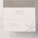 Ce design mariage est un mélange parfait d'élégance et de beachy. La principale caractéristique du design est un petit motif d'étoiles de mer blanc qui se trouve gracieusement au centre de l'arrière - plan de couleur marron taupe. Le motif de l'étoile de mer est conçu de façon complexe et ajoute une touche de nature à l'invitation. La typographie utilisée est de couleur blanche classique, ce qui ajoute une touche de sophistication et garantit que le texte est facile à lire. Le style de police utilisé est propre et moderne, créant un look intemporel qui ne sortira jamais de la mode.