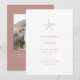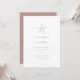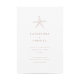 Ce design faire-part de mariage est un parfait mélange d'élégance et de beachy. L'élément principal de l'invitation est un petit motif d'étoiles de mer blanc qui se trouve gracieusement au centre de l'arrière - plan couleur terre cuite. Le motif de l'étoile de mer est conçu de façon complexe et ajoute une touche de nature à l'invitation. La couleur terre cuite de l'arrière - plan est chaleureuse et accueillante et donne le ton à un mariage terreux au bord de la plage. La typographie utilisée dans cette conception d'invitation est blanche classique, ce qui ajoute une touche de sophistication et assure que le texte est facile à lire. Le style de police utilisé est propre et moderne, créant un look intemporel qui ne sortira jamais de la mode.