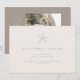 Ce design faire-part de mariage est un parfait mélange d'élégance et de beachy. L'élément principal de l'invitation est un petit motif d'étoiles de mer blanc qui se trouve gracieusement au centre de l'arrière - plan couleur ivoire. Le motif de l'étoile de mer est conçu de façon complexe et ajoute une touche de nature à l'invitation. La couleur crème de l'arrière - plan est chaleureuse et accueillante et donne le ton à un mariage terreux en bord de plage. La typographie utilisée dans cette conception d'invitation est marron classique, ce qui ajoute une touche de sophistication et assure que le texte est facile à lire. Le style de police utilisé est propre et moderne, créant un look intemporel qui ne sortira jamais de la mode.