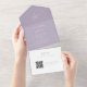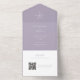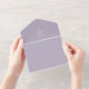 Ce design mariage est un mélange parfait d'élégance et de beachy. La principale caractéristique du design est un petit motif d'étoiles de mer blanc qui se trouve gracieusement au centre de l'arrière - plan couleur lavande. Le motif de l'étoile de mer est conçu de façon complexe et ajoute une touche de nature à l'invitation. La typographie utilisée est de couleur blanche classique, ce qui ajoute une touche de sophistication et garantit que le texte est facile à lire. Le style de police utilisé est propre et moderne, créant un look intemporel qui ne sortira jamais de la mode.