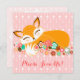 Ces invitations douces et élégantes de baby shower comportent un petit animal adorable de renard de bébé endormi sur un lit des fleurs. Éditez avec vos propres informations sur l'événement sur l'avant et le dos {{PERSONNALISER de clic pour changer couleurs des textes, polices et pour plus d'options de édition !
