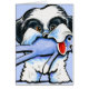 Dessin d'Andie d'un Shih Tzu noir et blanc qui agrippait un jouet de singe à chaussettes. Un cadeau amusant pour les amoureux de les chiens de Shih Tzu et les amateurs de races.