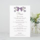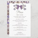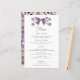Coquette et menu du dîner mariage rustique avec illustration dessinée à la main des arcs lilas et des fleurs.
