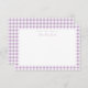 Le chèque en en vichy violet doux est une façon charmante de célébrer une nouvelle petite fille avec cette carte de papier à lettres customisée.