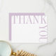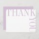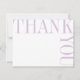 La typographie mauve douce est moderne et fraîche dans une disposition unique et frappante qui pousse littéralement les bords de la page. Un feuille à l'arrière vierge assez d'espace pour une note de remerciement écrite à la main.