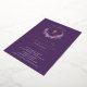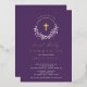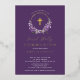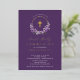 Belles invitations à la première communion Gold Foil avec une couronne de lilas lavande et une croix de feuille d'or sur un arrière - plan violet profond. Retournez notre invitation pour voir un retour de coordination pour une touche spéciale supplémentaire.