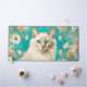 fleurs blanches d'arrière - plan turquoise et une belle Lilac Lynx point Siamese cat AI Art par minx267