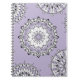 Un carnet en spirale avec mon Mandala Motif 1, imprimé sur un arrière - plan Lilac. Cette version est centrée sur mon Design 3 Mandala.