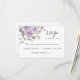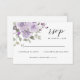 Carte RSVP mariage mauve violet moderne et élégant. Carte RSVP avec fleurs d'aquarelle peintes à la main et verdure dans les tons violet, violet, lilas, mauve et script de calligraphie verte et moderne. Vous pouvez personnaliser le libellé, le style de police, la couleur et la taille devant et derrière cette carte RSVP botanique. Éléments correspondants disponibles.