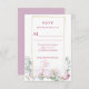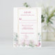 Ce marié rsvp est doté d'un arrière - plan blanc immaculé encadré par une bordure géométrique dorée qui ajoute une touche moderne et élégante. Des pivoines roses douces et des feuilles verdoyants mettent l'accent sur le design, apportant une atmosphère romantique et inspirée du jardin. La typographie est variée et gracieuse, mêlant les styles serif et cursif en noir, rose et or pour une présentation raffinée et chaleureuse. L'ensemble est équilibré et festif, parfait pour un mariage de vignoble avec un mélange de charme classique et d'ambiance contemporaine.