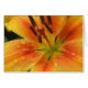 Carte pour notes avec nénuphar orange et gouttes de pluie. Vide pour votre propre message personnel.