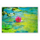 Un nénuphar fuchsia au feuillage vert citron dans une eau turquoise.