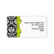 Étiquettes de adresse damassés noirs et blancs avec arc en citron vert. Entièrement Personnalisable. Le papier à lettres mariage correspondant est disponible dans ce magasin.