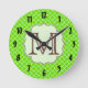 Lime Green Quarterfoil Lattice Trimestre Foil Monogramme initial Personnalisé Fabric Motif Horloge murale