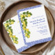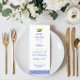 Le menu Limone, qui fait partie de la collection Limone Mariage Stationnaire, capture magnifiquement l'essence d'une célébration d'inspiration italienne, combinant le zeste lumineux des citrons à l'élégance intemporelle des carreaux de mosaïque bleue. L'arrière - plan est doté d'un riche motif en mosaïque bleue profonde, rappelant la céramique italienne traditionnelle qui apporte une touche de sophistication et de charme d'antan, et d'un motif citron jaune vif, avec des feuilles verts luxuriants, ajoutant une touche fraîche et vibrante. Personnalisez facilement ce menu sur la page principale.