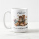 Ajoutez une touche de charme rustique et de beauté florale à votre tasse de café préférée avec cette tasse personnalisée avec des bottes cowboy élégantes ornées de fleurs d'aquarelle vibrantes. Les bottes marron présentent un motif floral complexe sur la moitié supérieure, parfaitement complété par un bouquet de fleurs environnantes aux teintes douces et colorées. Ce design unique allie les ambiances campagnardes à l'élégance féminine, ce qui en fait une tasse parfaite pour tenir votre chocolat chaud, thé ou café. Un cadeau parfait pour l'amant occidental, ami, danseur dans votre vie. Personnaliser avec nom.