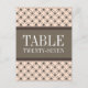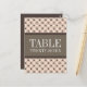 Carte postale Fancy Lattice Numéro de table tendance et chic avec un cercle élégant et un motif clouté en diamant sur un arrière - plan pêche dynamique avec une large bordure brune à deux tons. Cette élégante carte de table est parfaite pour un mariage moderne. Facile à customiser, il suffit d'ajouter le ou les numéros de table appropriés dans le champ de texte fourni. Cliquez sur "Customiser" pour trouver d'autres options de personnalisation.