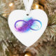 Symbole de l'infini avec une belle plume peinte en couleurs vives violettes et bleues sur fond blanc.