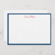 La carte à note plat personnalisée est affichée en blanc avec une bordure bleu marine. Montré dans le papier de lin blanc. Customisez cette carte et changez votre nom. Recherchez les enveloppes correspondantes.