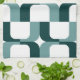 Un design géométrique audacieux composé de formes d'angle incurvées disposées dans des directions alternées avec des couleurs alternées.