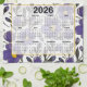 Linge De Cuisine 2026 Calendrier Fleurs violettes bleues avec Feuil