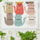Ce design présente des illustrations de chats dans une variété de couleurs vives et vives.