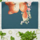 Serviette de cuisine avec un dessin de 2 renards rouges. L'un debout l'autre pose. Dessiné avec aquarelle.
