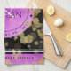 Célébrez les 6ème, 33ème, 47ème ou 48ème anniversaire améthyste mariage avec cette serviette élégante! Des lettres noires élégantes avec des confettis hexagonaux dorés sur des arrière - plans améthystes violets et noirs ajoutent une touche mémorable à cette occasion spéciale et à cette étape importante. Personnalisez avec les noms du couple, les dates du mariage et jusqu'à trois messages de félicitations. Design © W.H. Sim. Voir plus sur zazzle.com/expressionsoccasions