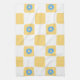 Linge De Cuisine À damiers Jaune Blanc Avec Motif Fleur Bleu