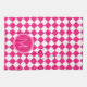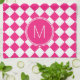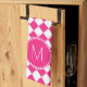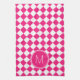 Cette serviette de cuisine d'inspiration rétro dispose d'un motif en diagonale blanc et rose vif à damiers. Personnalisez le monogramme blanc et rose girly correspondant avec votre choix d'origine. Fait un grand cadeau pour le ménage.