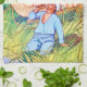 Belle illustration d'un livre de livres d'anciennes couleurs de 1906, tirée d'un livre de lecture de 4e année, dépeint la vie au moyen-orient au tournant du 20e siècle. La scène montre un jeune garçon d'Arabie et son chameau faisant une pause dans une oasis luxuriante. Le garçon éteint sa soif d'eau d'une cruche tandis que sa bête fidèle se repose à côté de lui dans la longue herbe.