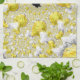 Ce produit présente un graphique numérique fractal abstrait en or et blanc avec Mandelbrot noir au milieu.