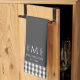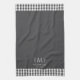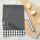 en vichy blanc gris fusain, ferme rustique monogramme personnalisé, serviette de cuisine customisée personnalisée, motif de chèque de nom personnel, élégant en tissu de à damiers, noir ajouter votre propre texte, nom de famille gris, gris paraphé initial, classique traditionnel simple chef, cuisine classe feuille de blé