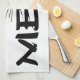 Aimez-moi mon texte et un dessin d'un chat drôle avec les yeux verts. Drôle serviette de cuisine.