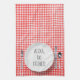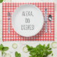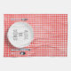 Alexa commande électronique pour laver la vaisselle sur une assiette blanche sur motif rouge et blanc en vichy.
