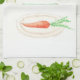 Aquarelle et encre de couleur blanche illustrant un chat avec une carotte. Une image délicieuse pour la cuisine !