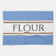 Ce design culinaire rétro présente du texte FLOUR à l'intérieur d'une large bande blanche centrale surmontée de rayures noires, jaunes et blanches contre des rayures bleues douces. Le texte peut être personnalisé.