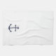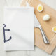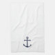 Serviette de cuisine minimaliste moderne avec ancre bleu marine sur arrière - plan blanc.