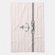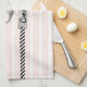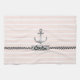 Serviette de cuisine moderne avec ancrage gris aquarelle sur un arrière - plan rayé rose clair et blanc. Vous pouvez également personnaliser la conception avec du texte personnalisé sous l'ancrage.
