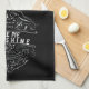 Élégante serviette de cuisine pour les amoureux de lune dispose fictivement étiquette lingerie Apple Pie lune Appalachian en blanc/gris clair sur arrière - plan noir.