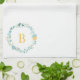 Linge De Cuisine Aqua et Yellow Monogramme Floral Wreath