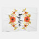 Serviette de cuisine avec fleurs d'aquarelle de corail sur arrière - plan blanc et texte personnalisable.