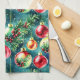 Linge De Cuisine Aquarelle ornements de Noël, rouge et vert Turquoi