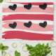 Aquarelle Rouge rose rayures Coeurs noirs Serviette de cuisine Motif de la cuisine.