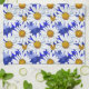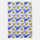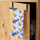 Serviette de thé dans une aquarelle motif de marguerites blanches aux centres jaunes dorés, sur un arrière - plan dans les tons bleu denim