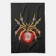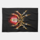 Araignée mécanique à vapeur avec or, engrenages en laiton et lampe en verre rouge sur un arrière - plan noir. Style Steampunk.