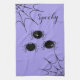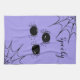 Serviette de cuisine en violet avec imprimé d'araignées dansantes Halloween. Customisez cet objet ou achetez tel quel.