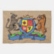 Obtenez votre propre barbecue d'armoiries. Comprend des côtes et du steak flanqué d'un taureau rampant et sanglier rampant prêt à honorer vos compétences de grill. Vient avec votre propre devise en latin je suis venu, j'ai cuisiné, j'ai mangé autour du bouclier. Faites-le parfait en customisant avec votre propre nom.