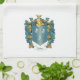 Le thème héraldique en bleu et or d'aqua présente la version anglaise de la Gibson Family Crest. Cette armoirie ferait un cadeau familial unique. Bouclier affiche un arrière - plan bleu avec trois cigognes montrant les ailes ouvertes. Crête de couronne d'or au sommet. Le nom de la bannière ci-dessous indique Gibson sur la serviette blanche.