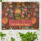 Serviette de cuisine botanique d'automne personnalisée avec tournesols, baies, feuilles, feuillage et de jolis motifs d'automne. Happy Fall Y'all ou d'autres salutations personnalisées et nom de famille ou nom de personne.